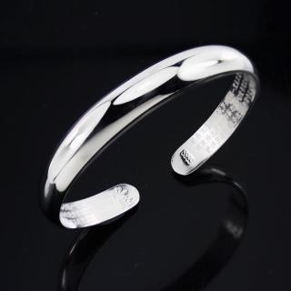 表面全光面拋光時尚款,內刻心經經文守護圓滿,實心打造約0.9台兩,手圍可調